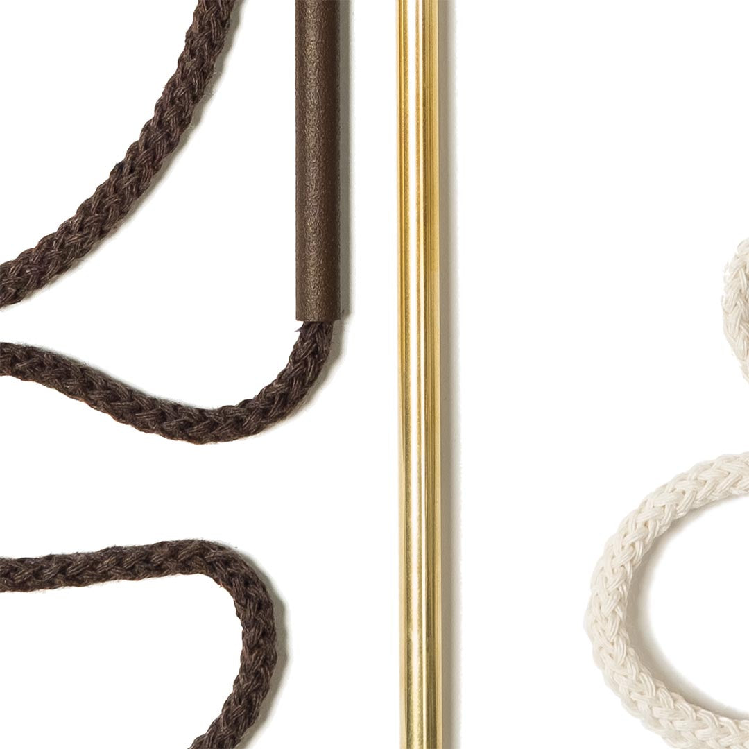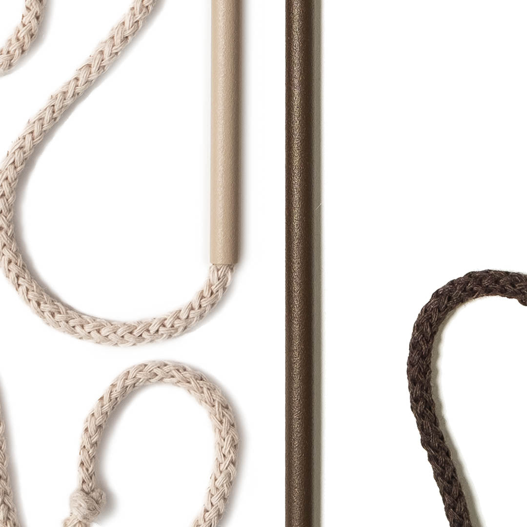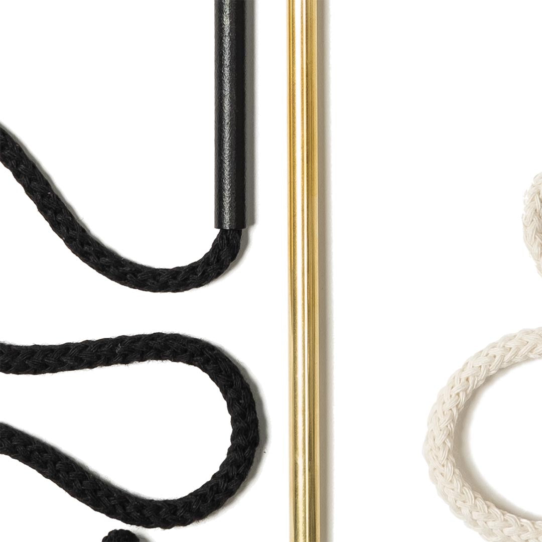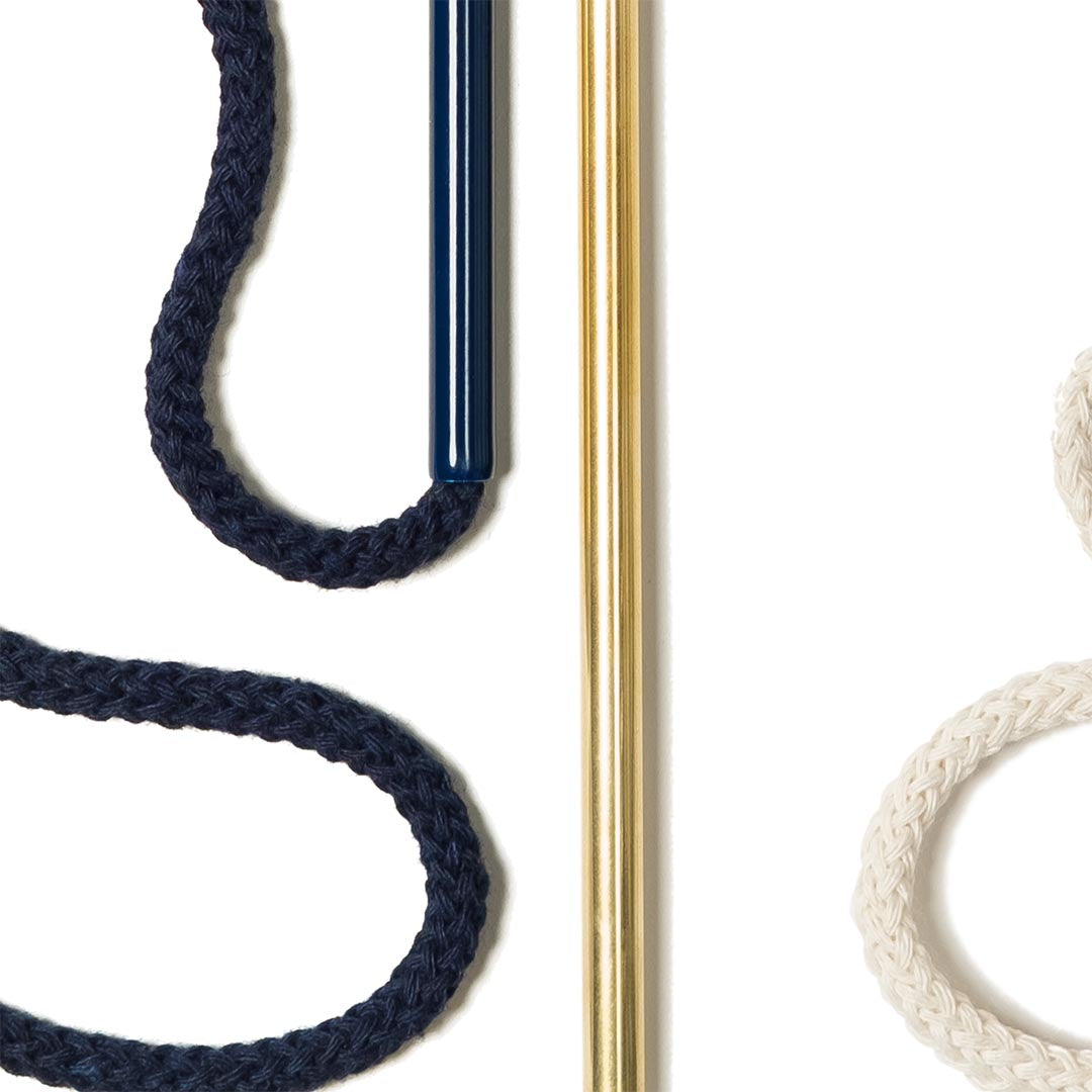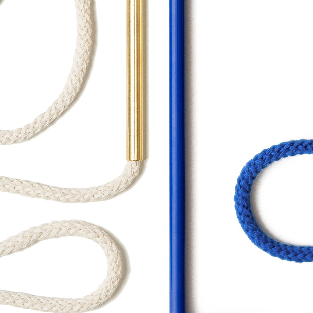 Aluminium and Polyester Powder Coating OR Raw Brass. Recycled Cotton Cord. All materials are sourced in the EU. Handmade and Assembled in Sweden.