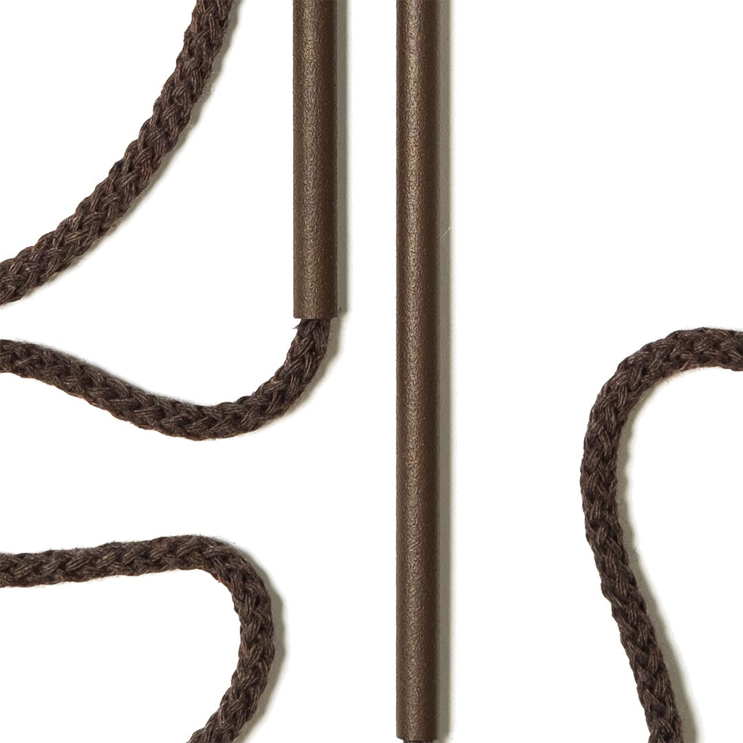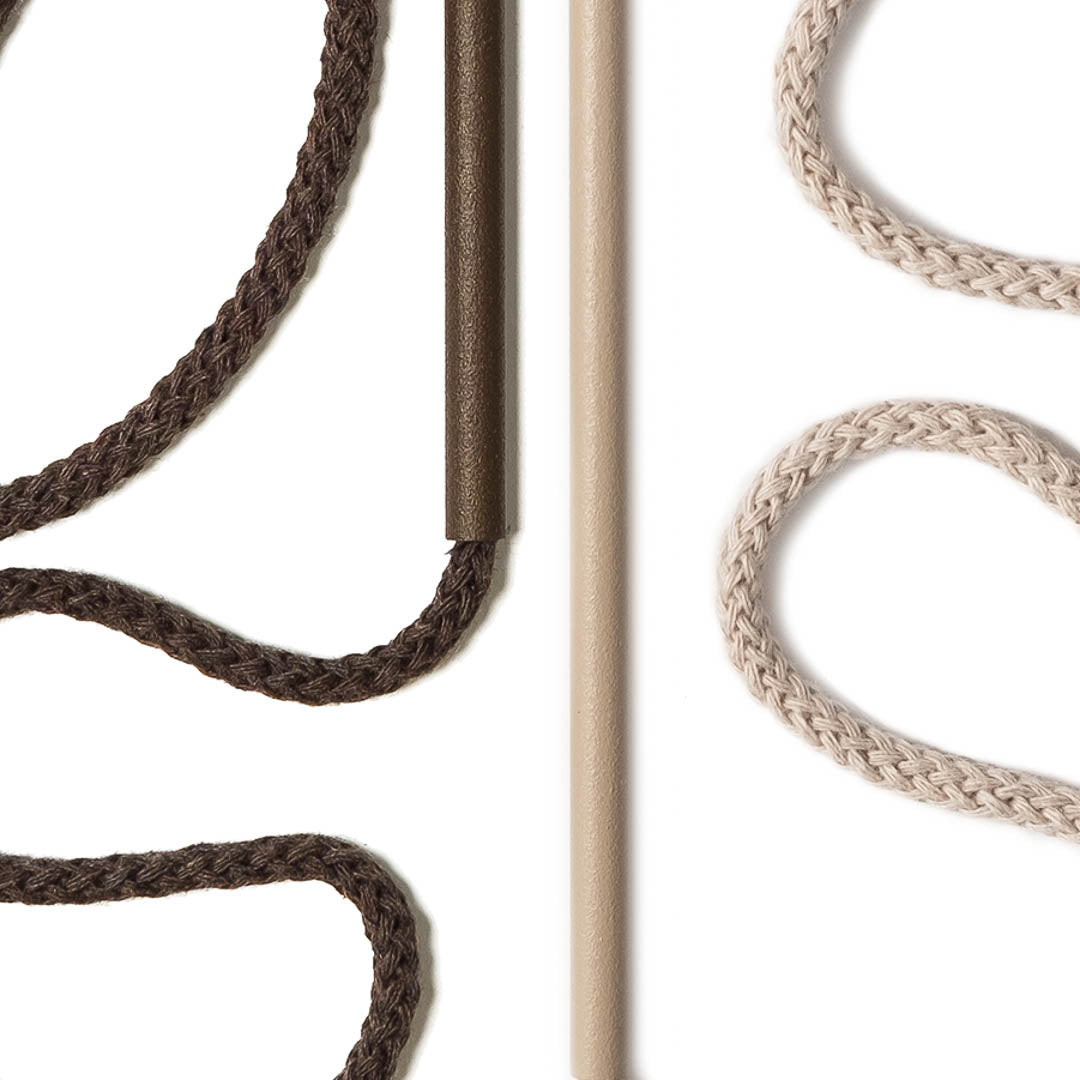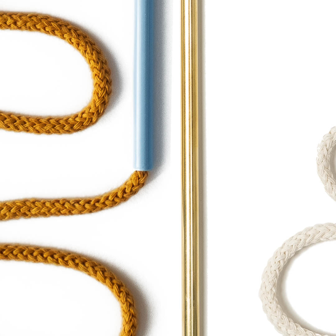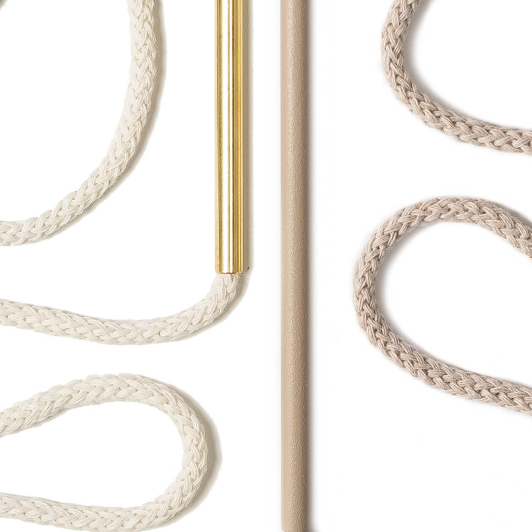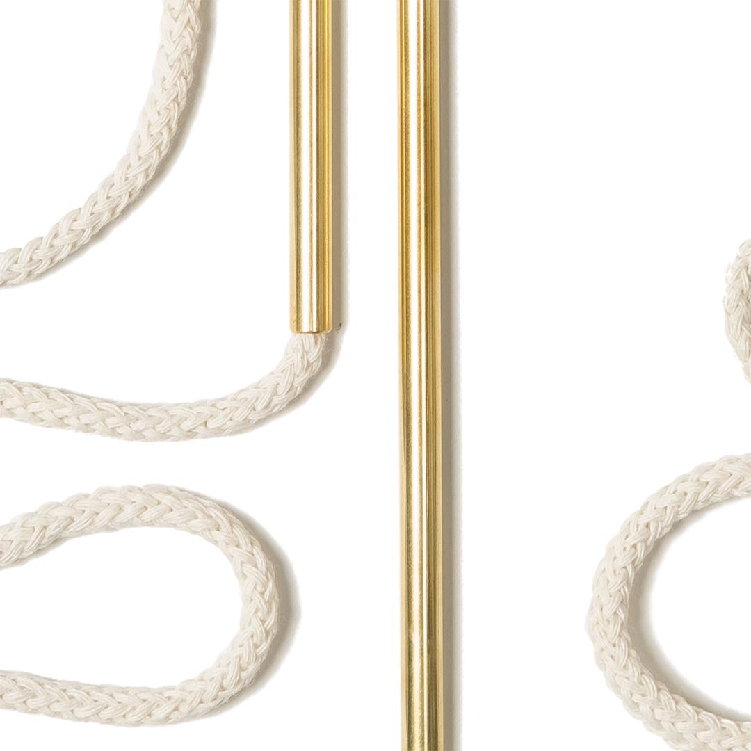 Aluminium and Polyester Powder Coating OR Raw Brass. Recycled Cotton Cord. All materials are sourced in the EU. Handmade and Assembled in Sweden.