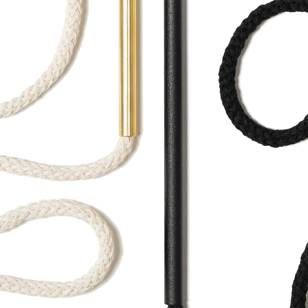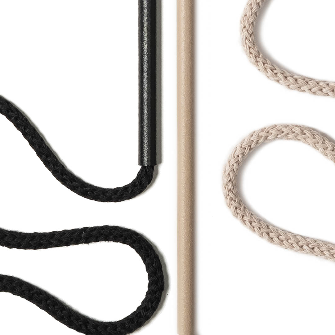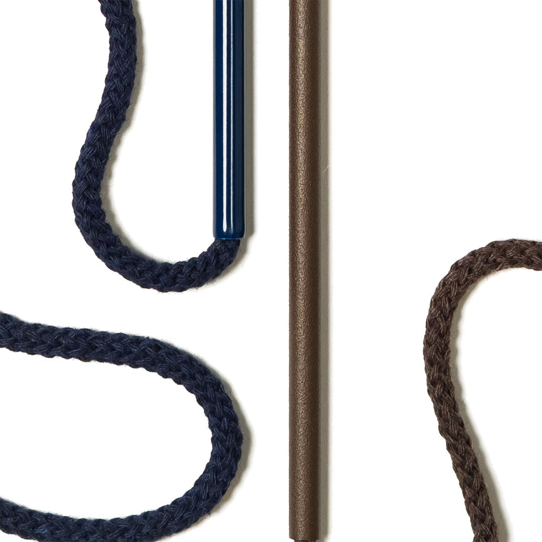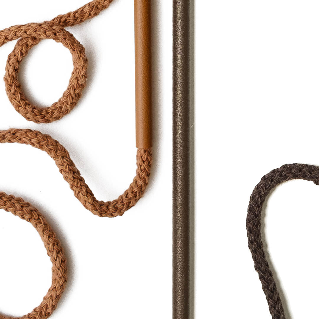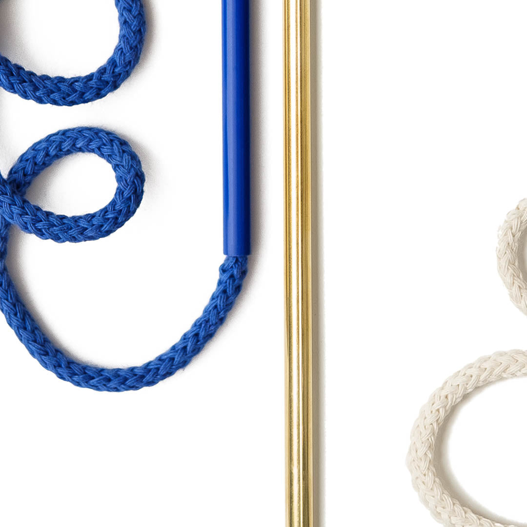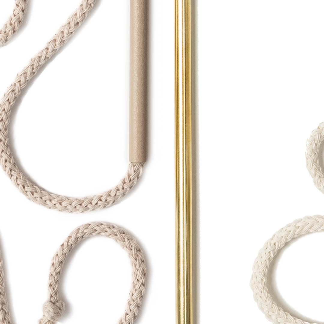 Aluminium and Polyester Powder Coating OR Raw Brass. Recycled Cotton Cord. All materials are sourced in the EU. Handmade and Assembled in Sweden.