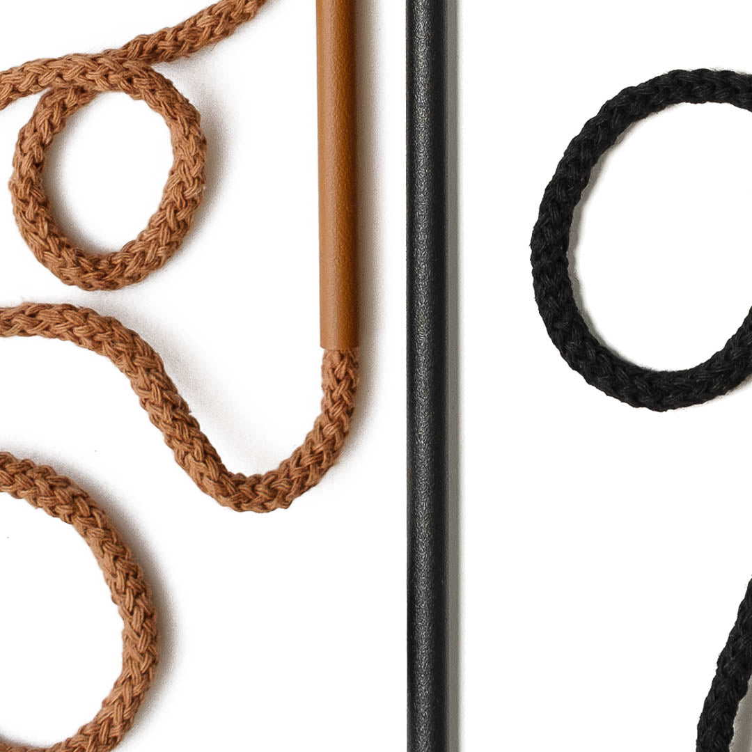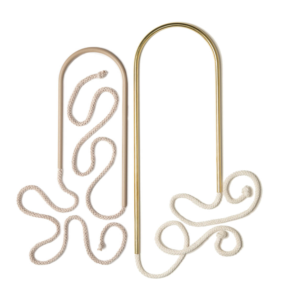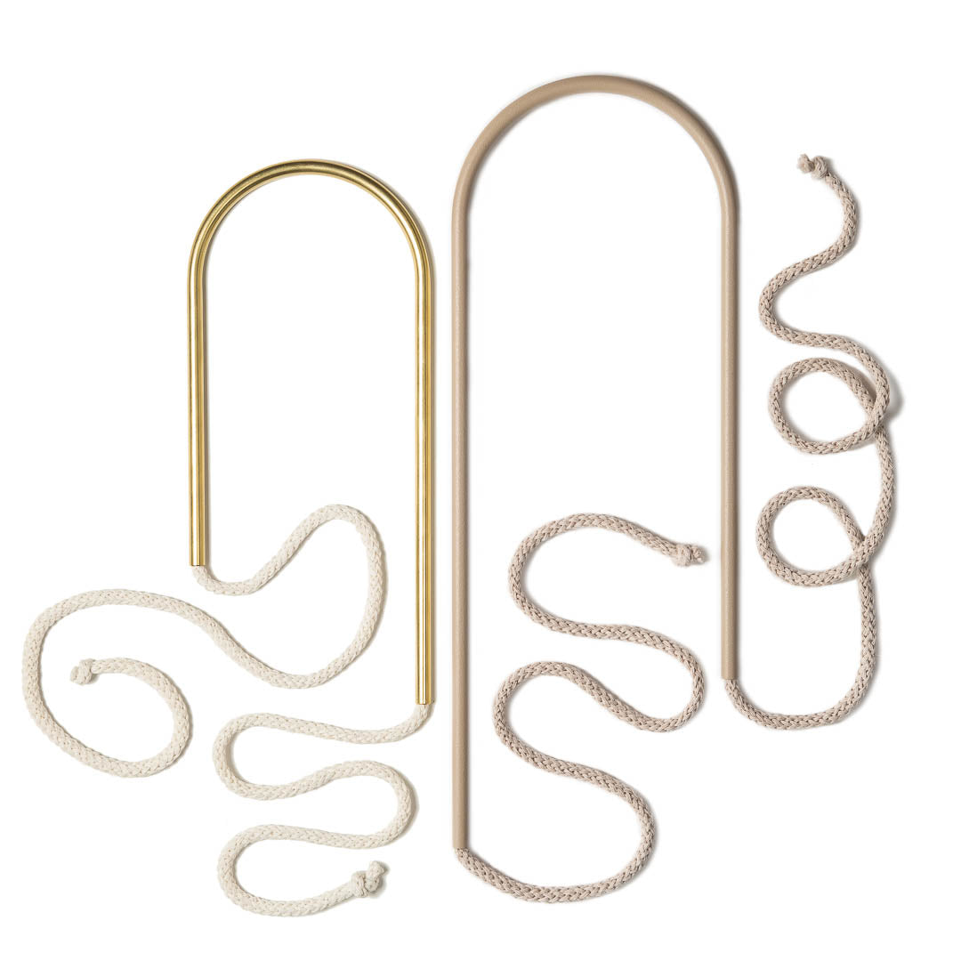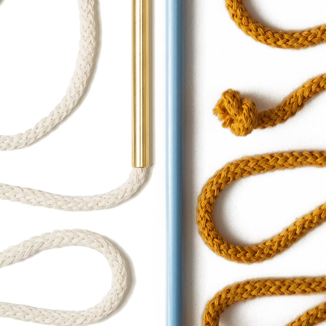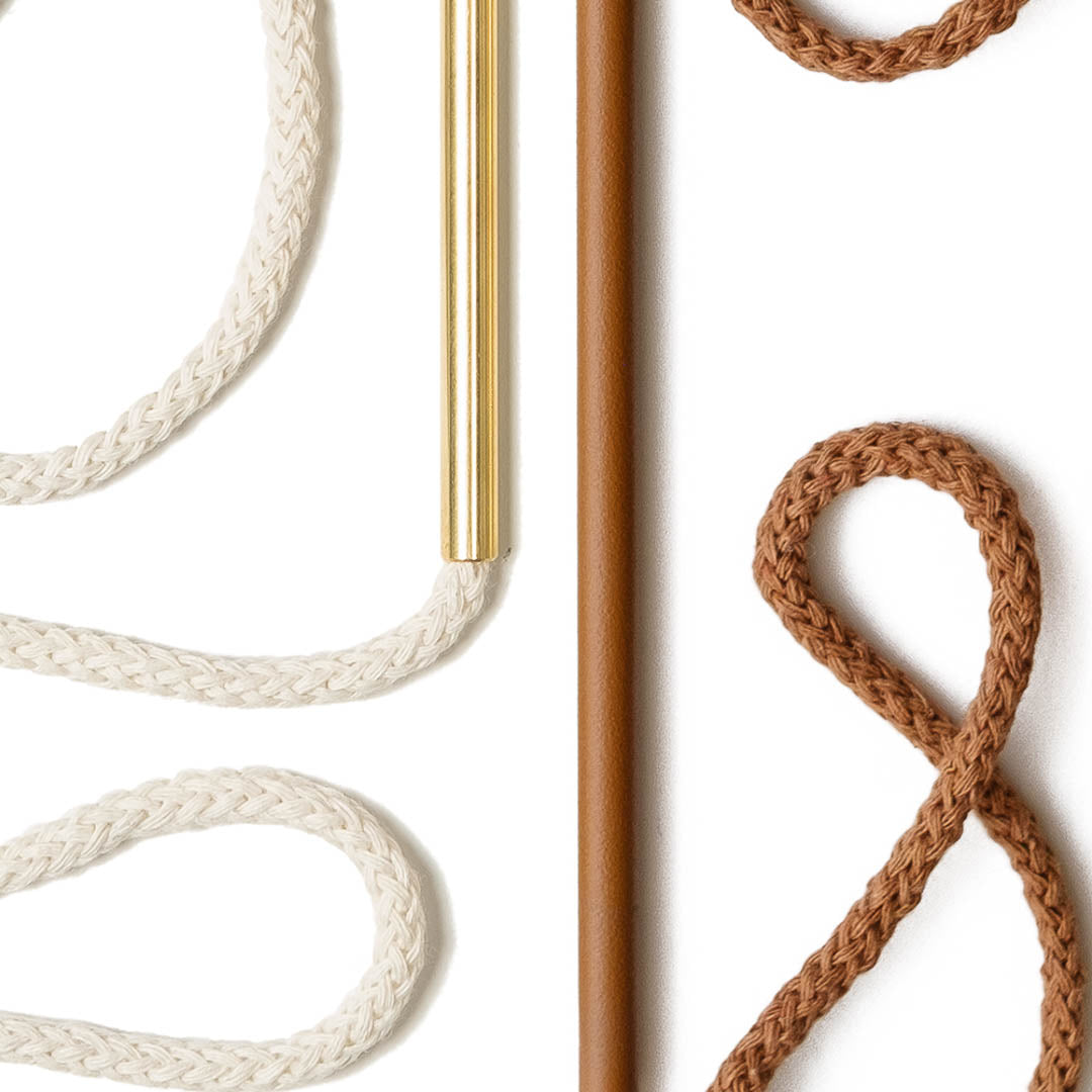 Aluminium and Polyester Powder Coating OR Raw Brass. Recycled Cotton Cord. All materials are sourced in the EU. Handmade and Assembled in Sweden.