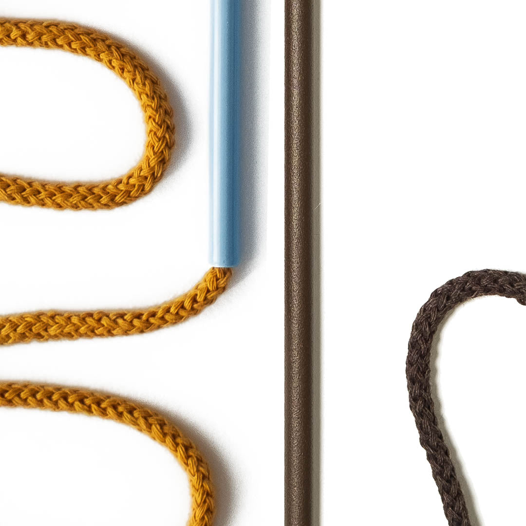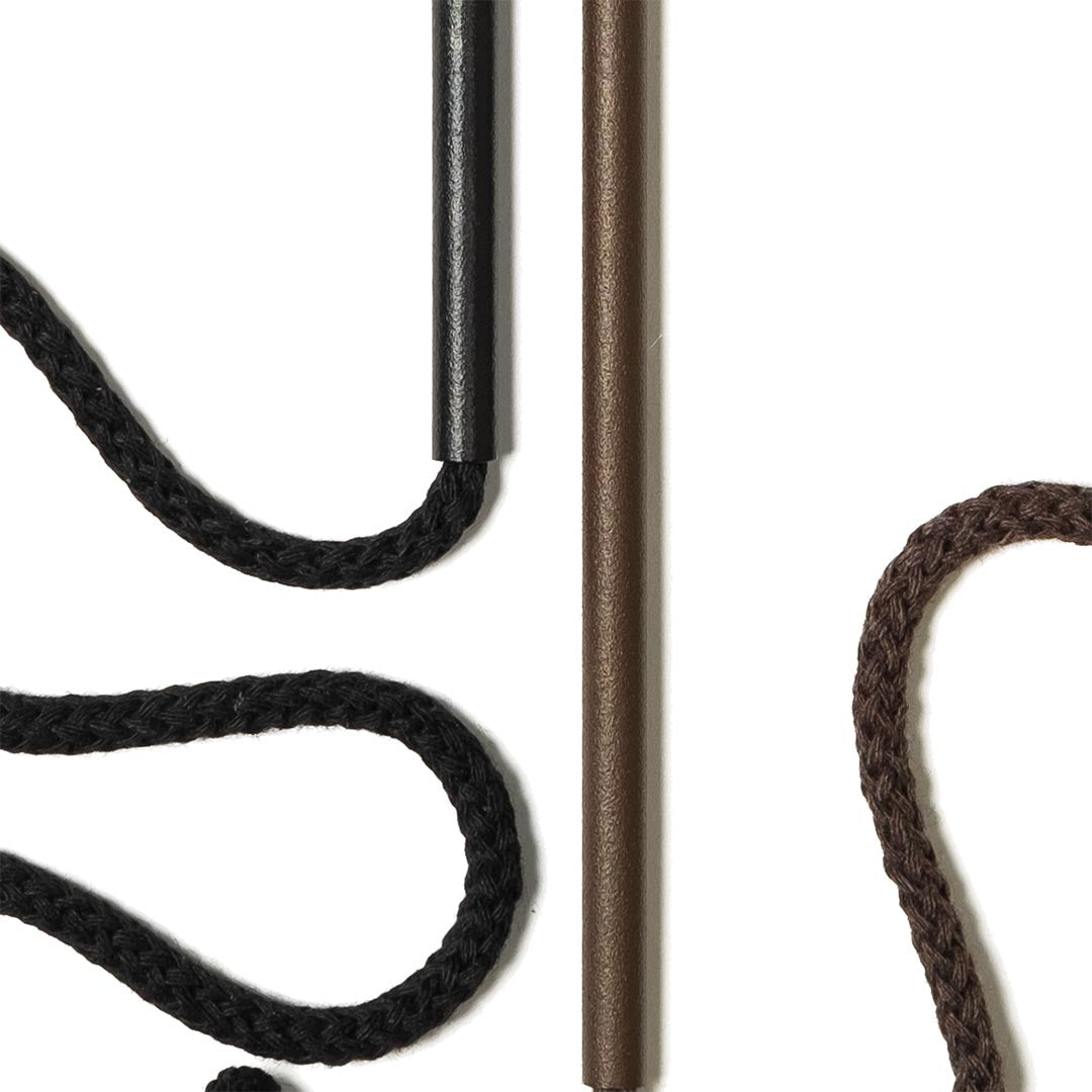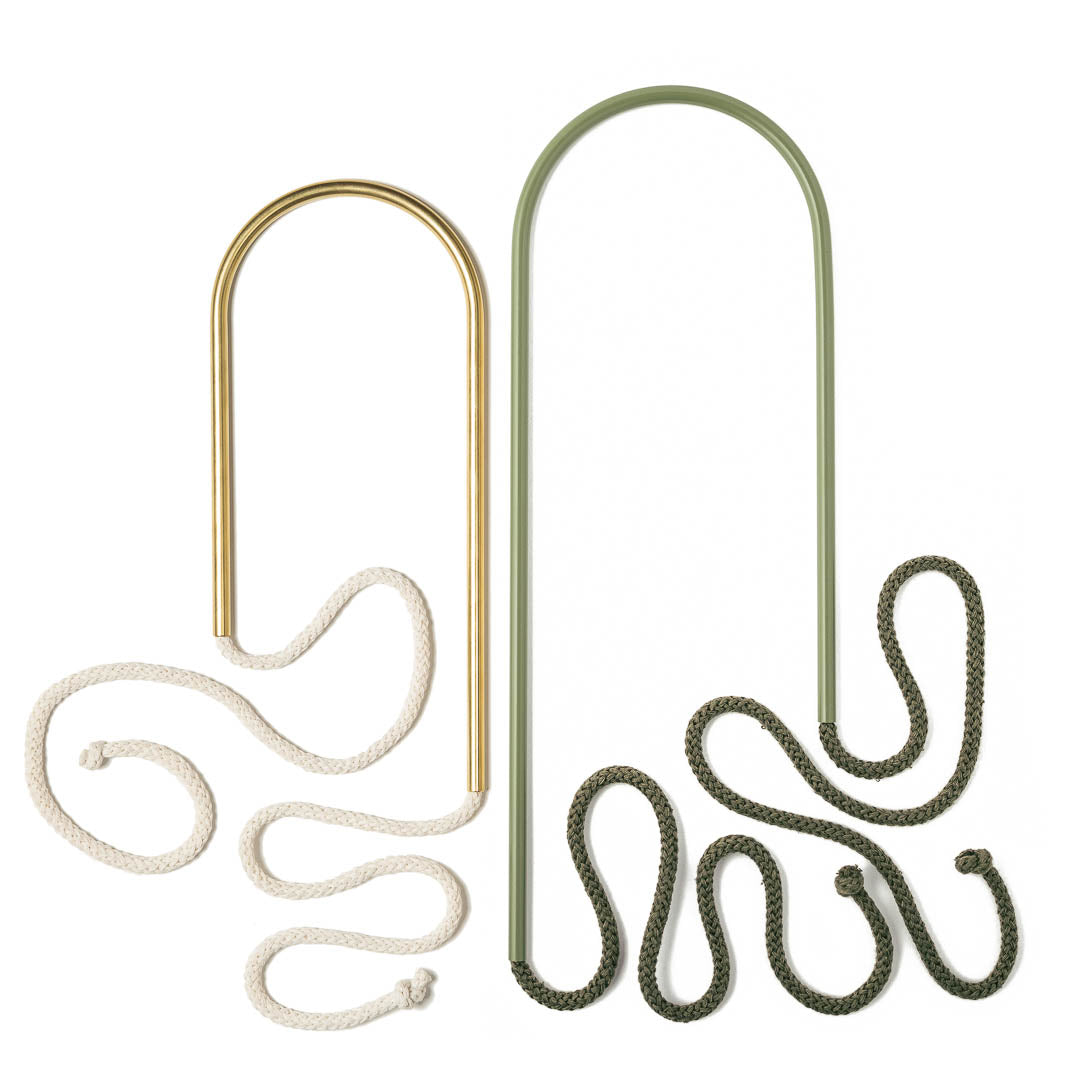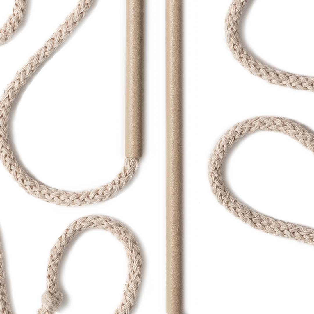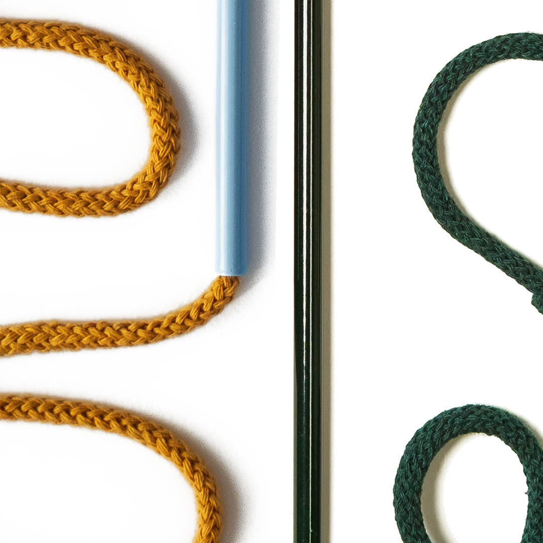 Aluminium and Polyester Powder Coating OR Raw Brass. Recycled Cotton Cord. All materials are sourced in the EU. Handmade and Assembled in Sweden.