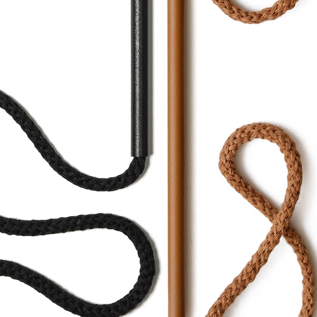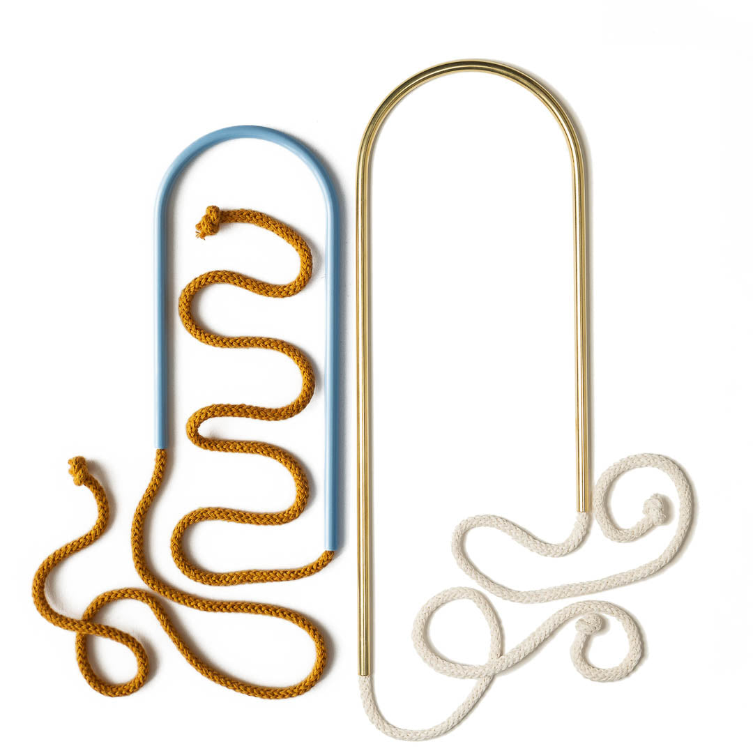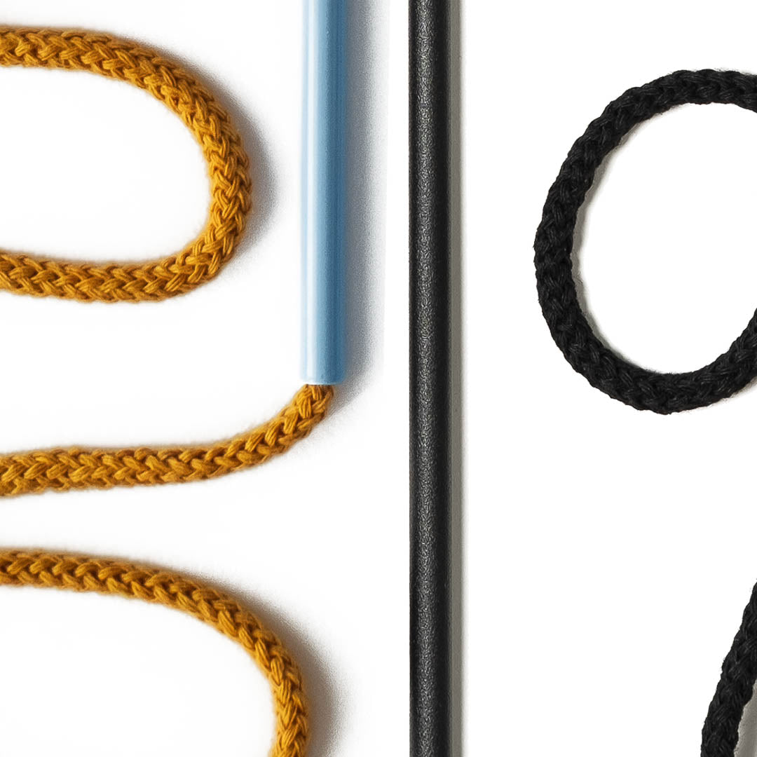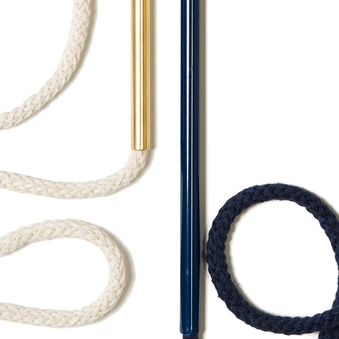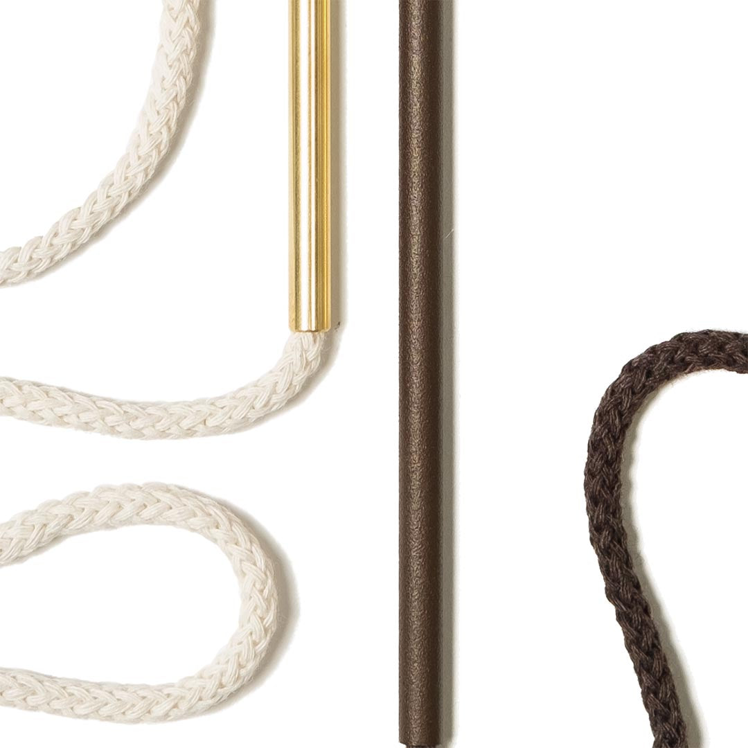 Aluminium and Polyester Powder Coating OR Raw Brass. Recycled Cotton Cord. All materials are sourced in the EU. Handmade and Assembled in Sweden.