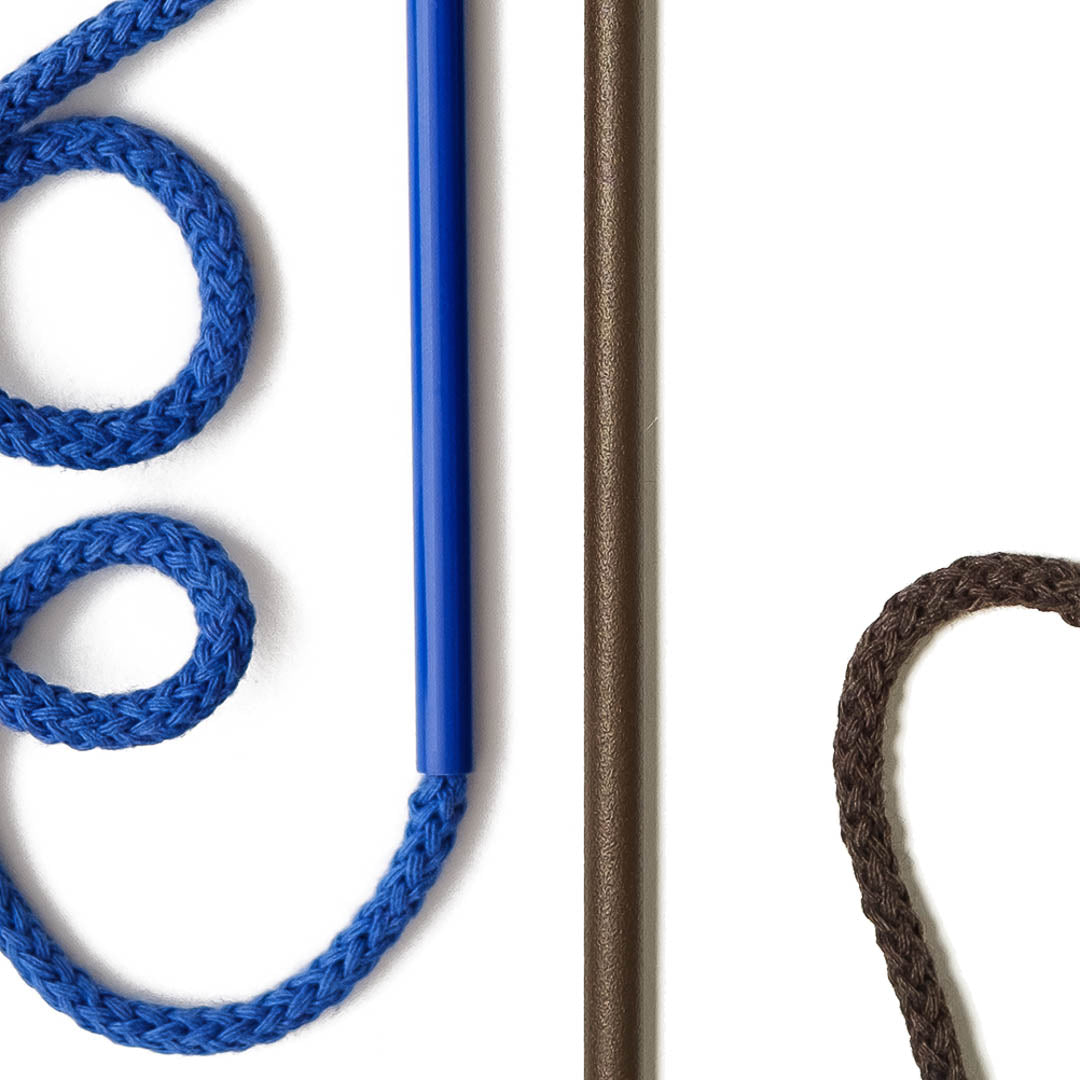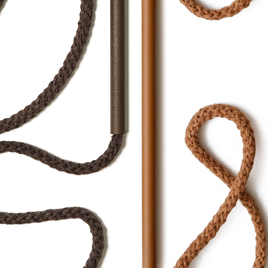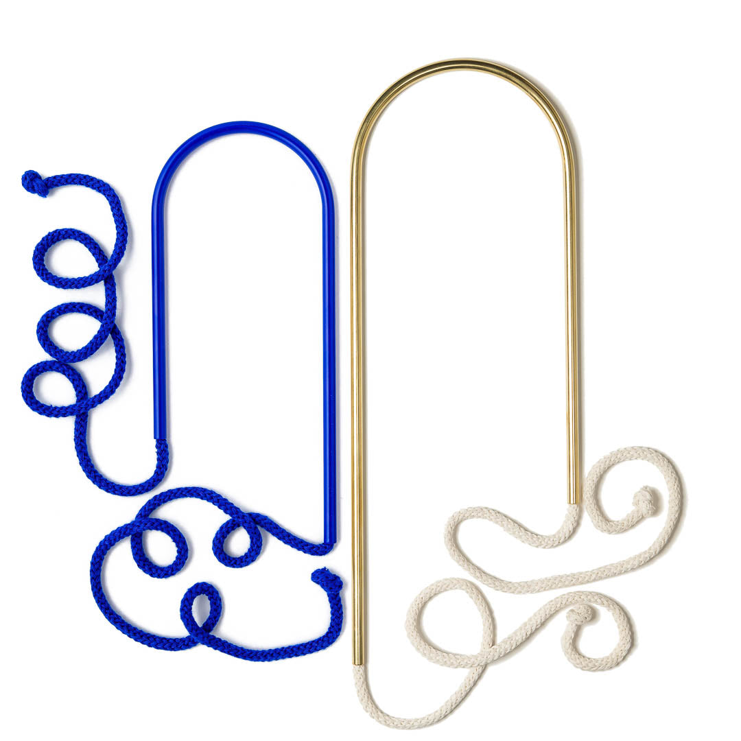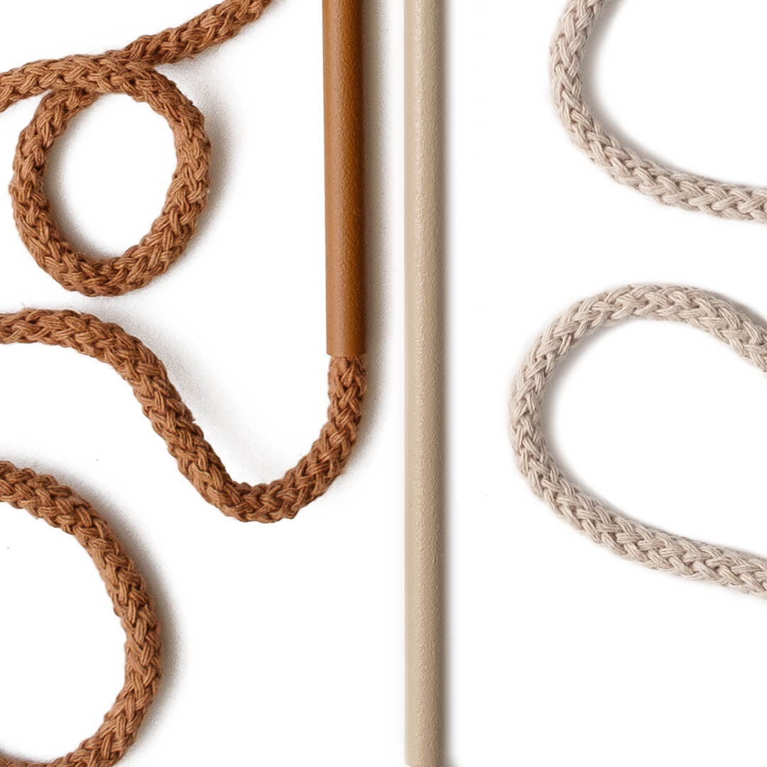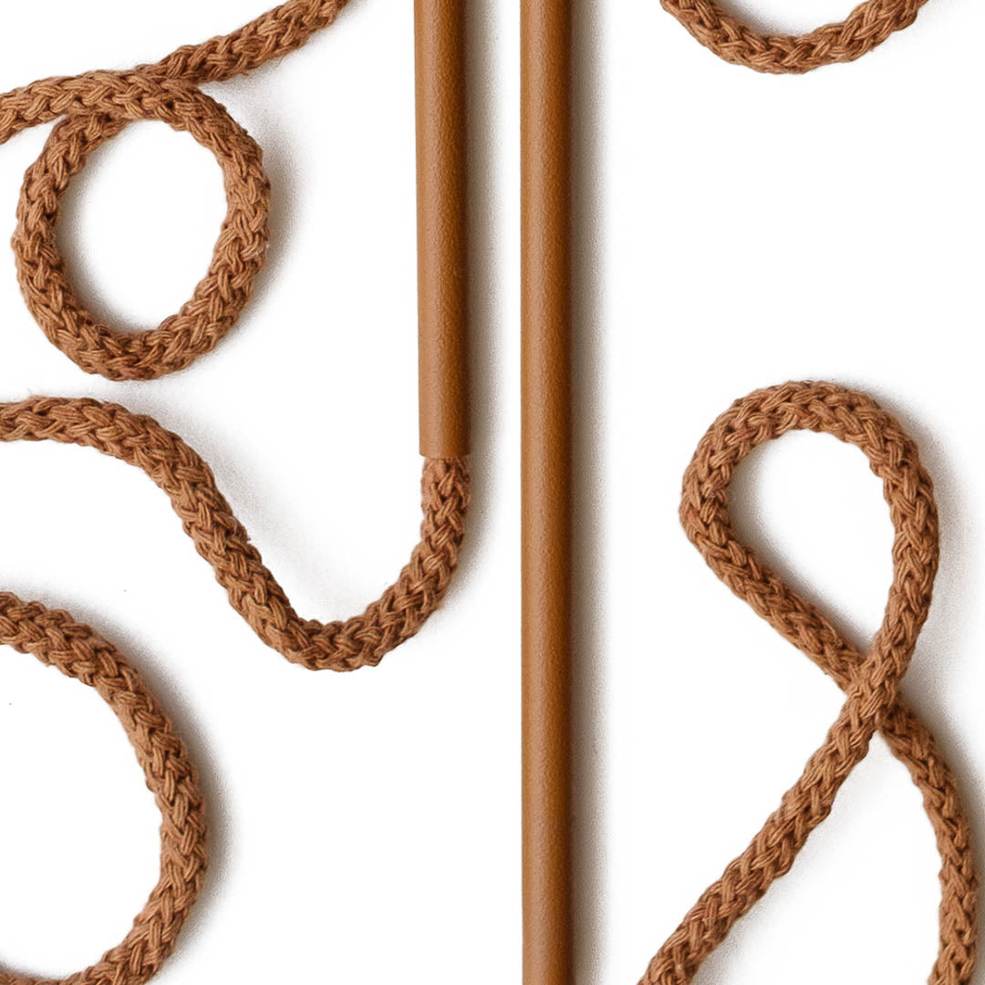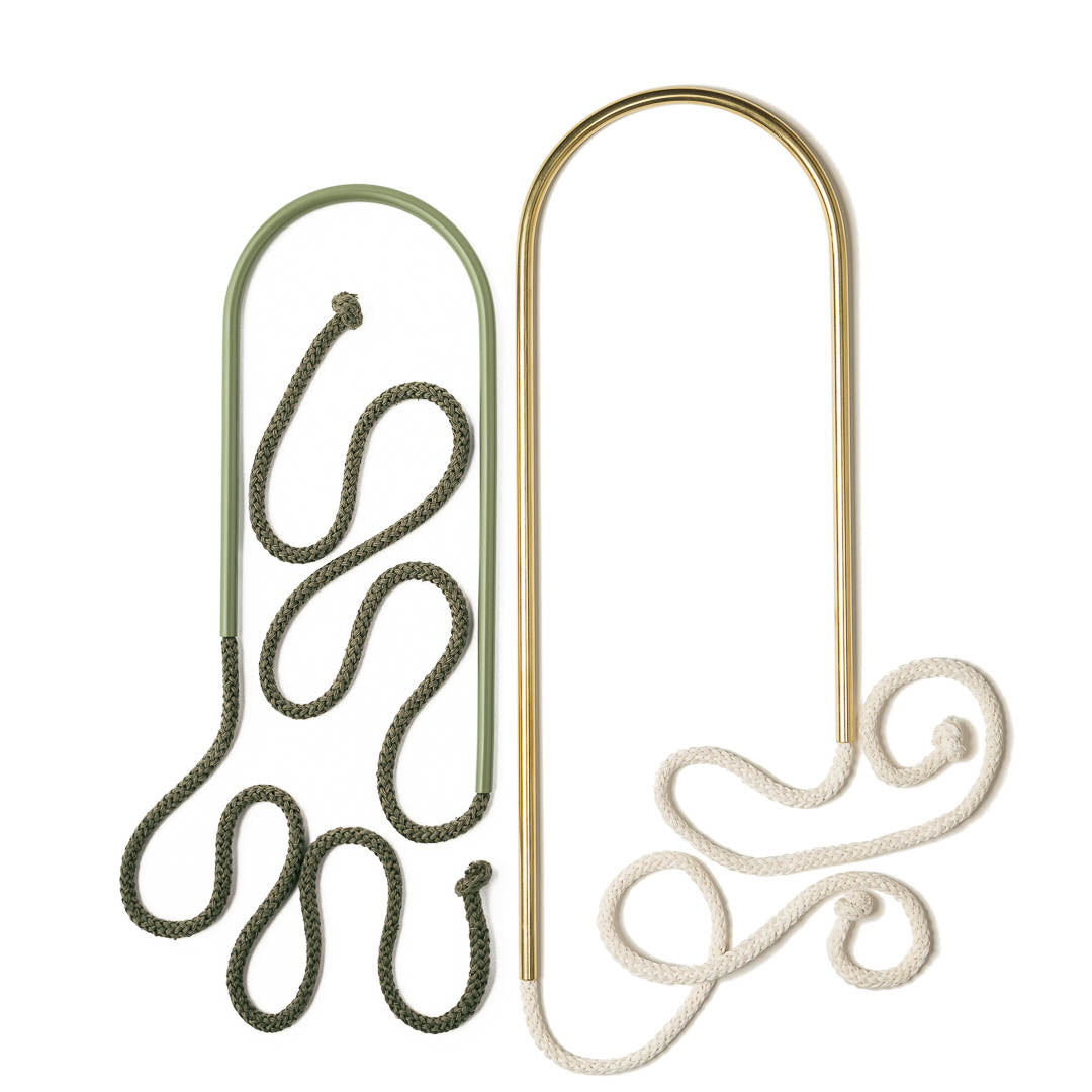Aluminium and Polyester Powder Coating OR Raw Brass. Recycled Cotton Cord. All materials are sourced in the EU. Handmade and Assembled in Sweden.