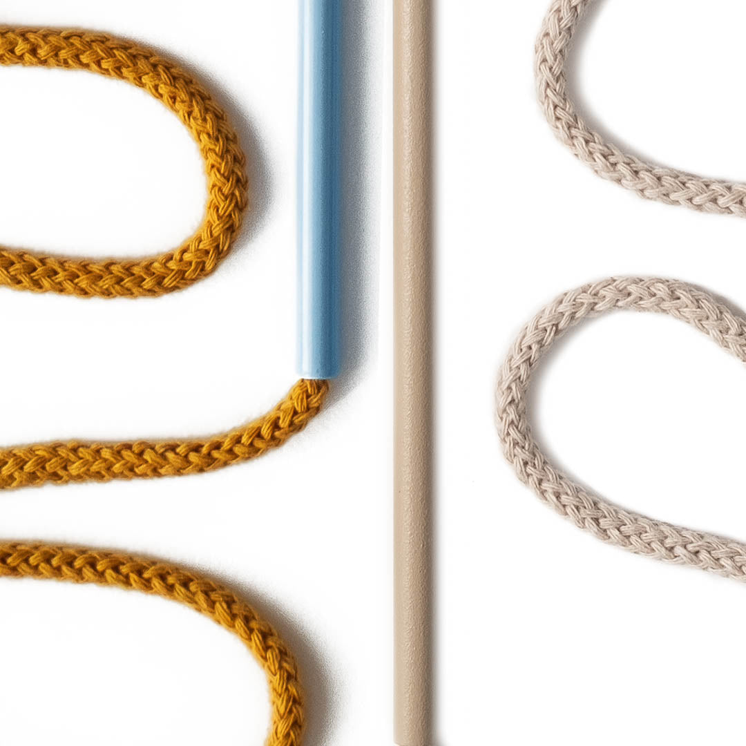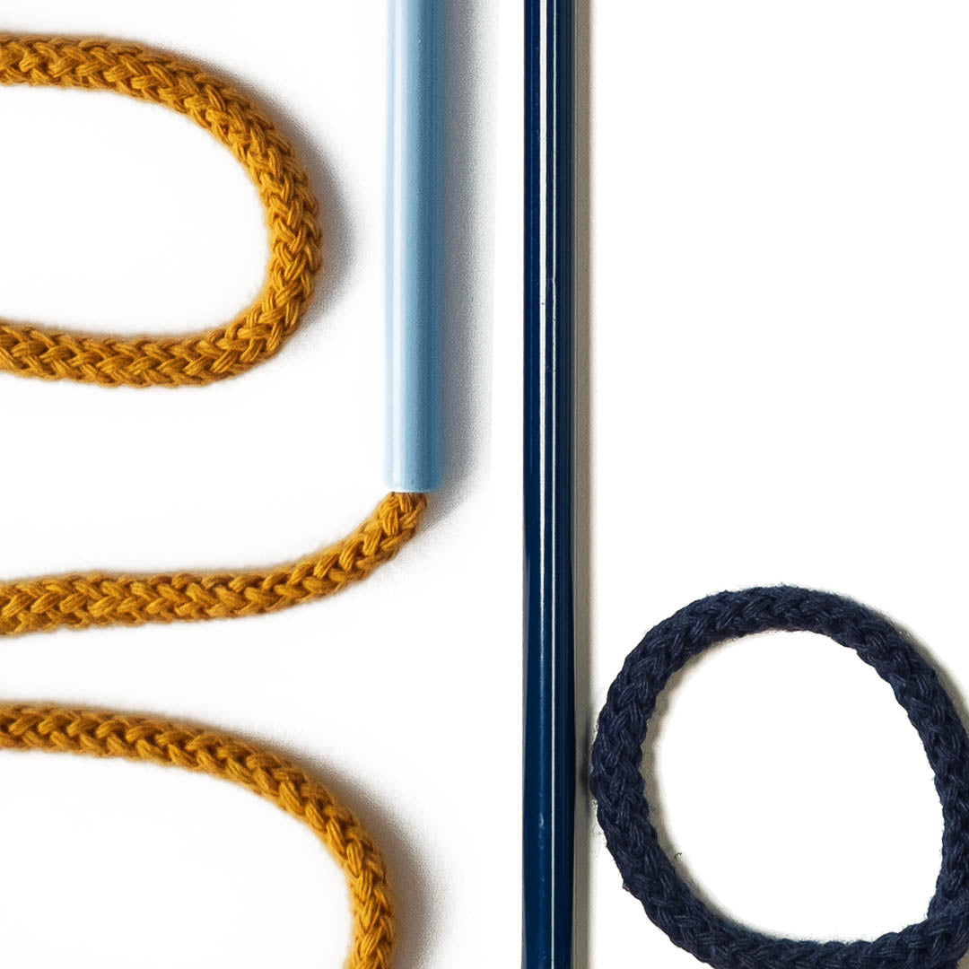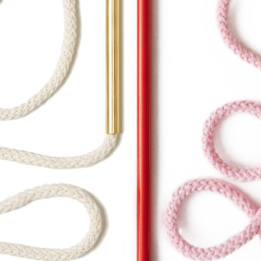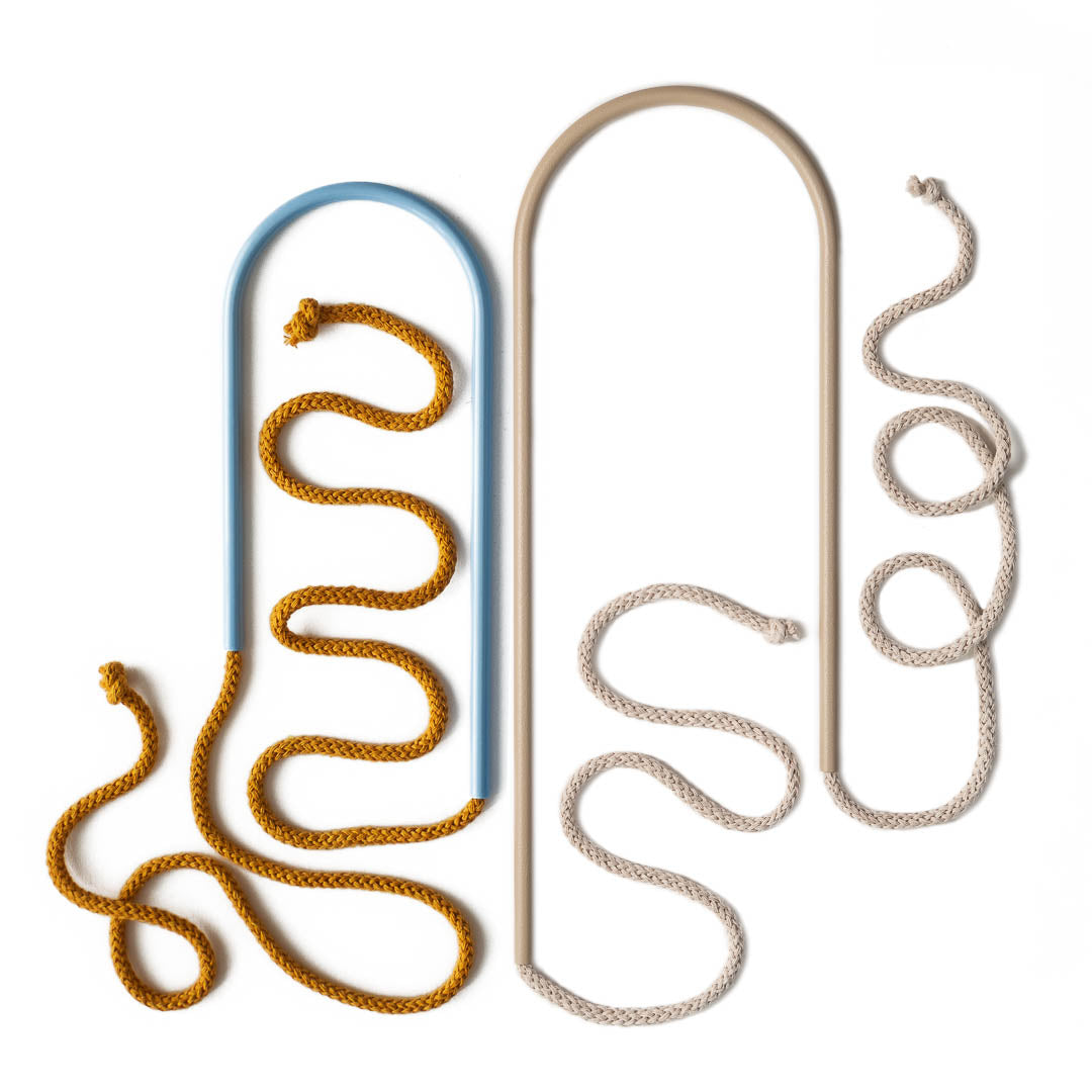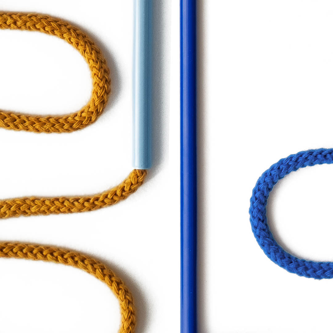 Aluminium and Polyester Powder Coating OR Raw Brass. Recycled Cotton Cord. All materials are sourced in the EU. Handmade and Assembled in Sweden.